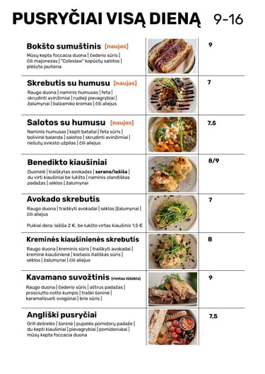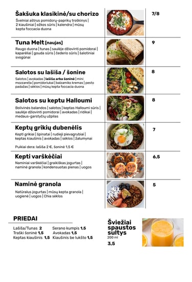Kavamanija "prie bokšto" J. Basanavičiaus g. 91 siūlo mėgautis vėlyvaisais pusryčiais nuo 09:00 iki 16:00.
