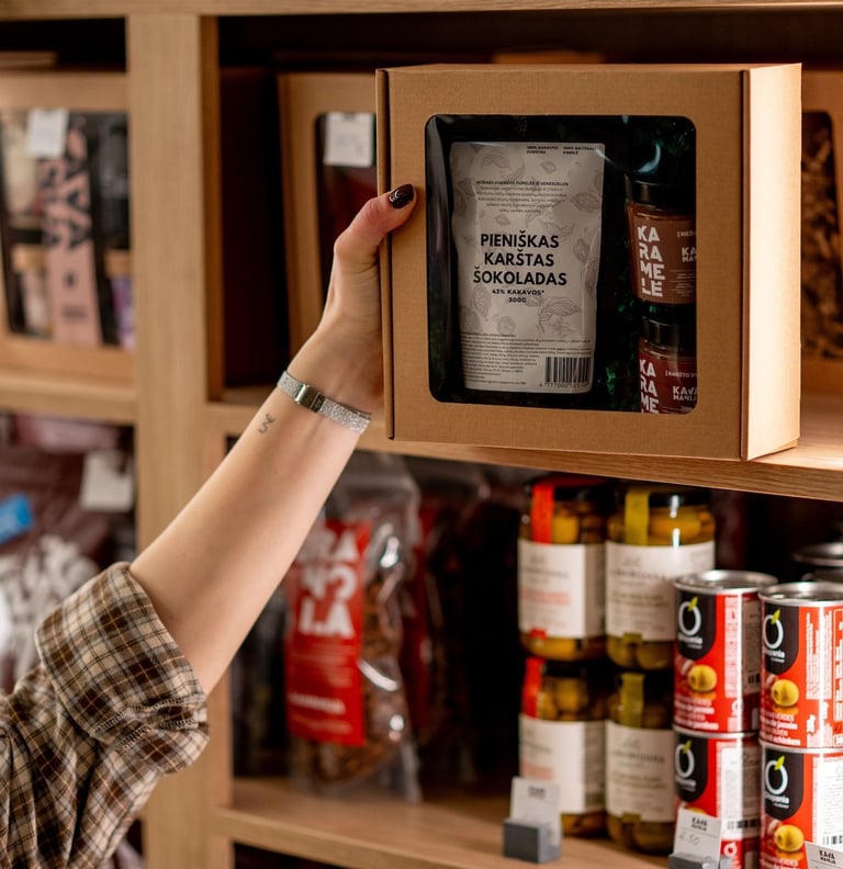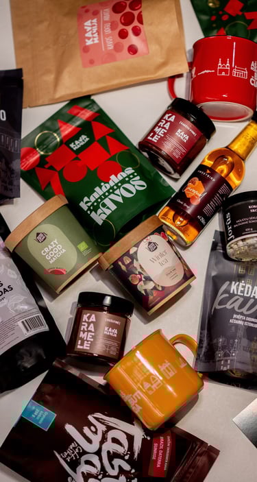 Šviežia kava, skanėstai ir suvenyrai. Rinkitės iš daugelio pasiūlymų, o mes viską supakuosime.
